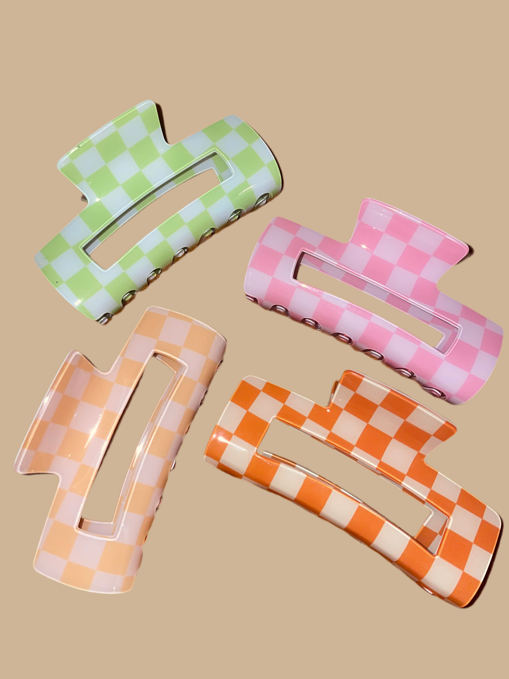 Throw your hair up with our super cute, checkered claw clip!