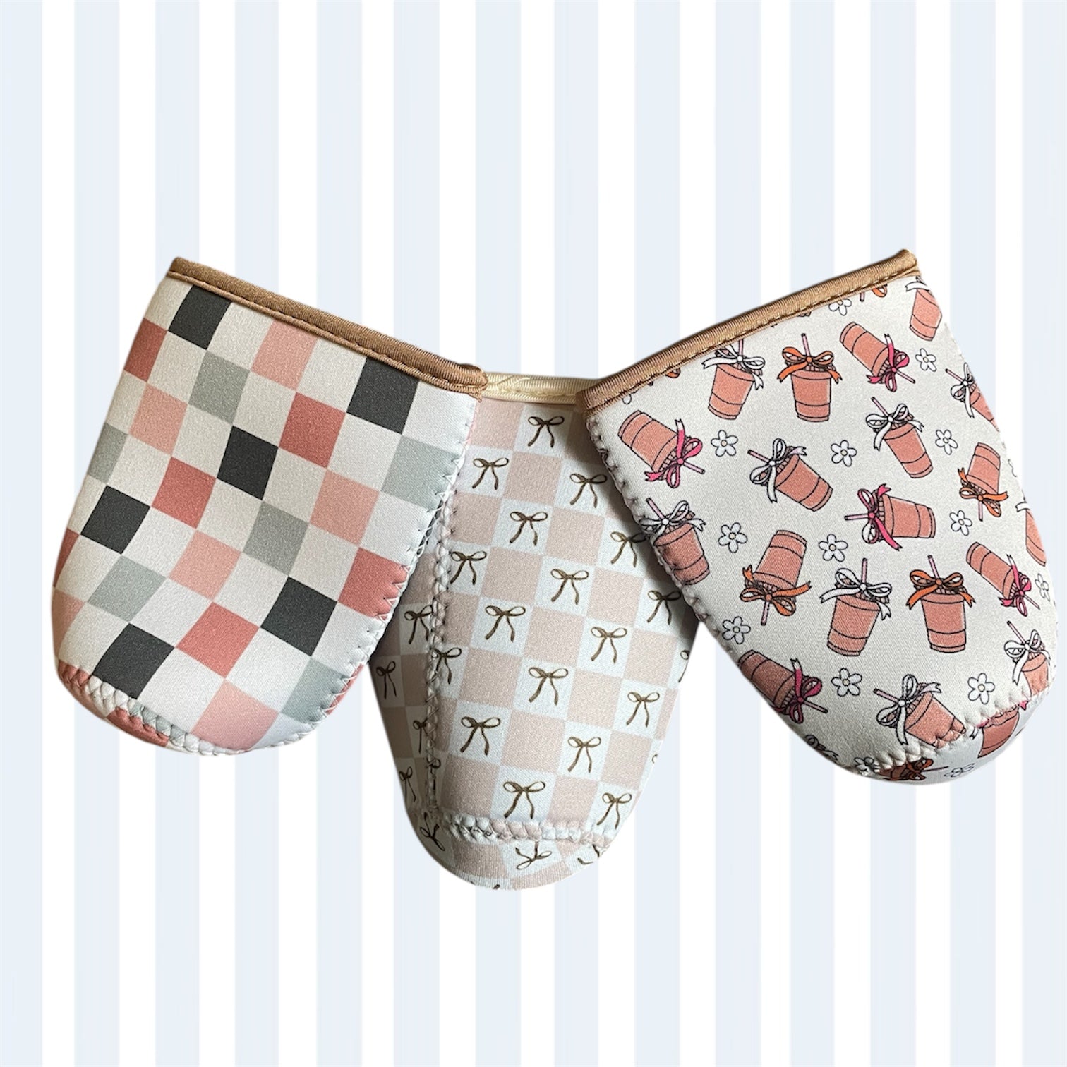 Enjoy our cute iced coffee sleeve with zero drips at every sip! Fits size Large (Venti) most comfortably.