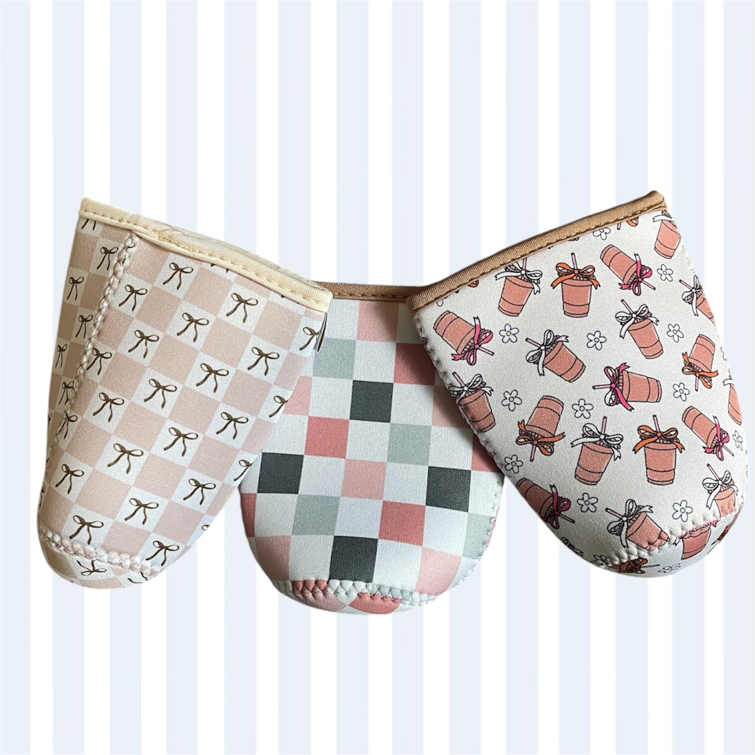 Enjoy our cute iced coffee sleeve with zero drips at every sip! Fits size Large (Venti) most comfortably.