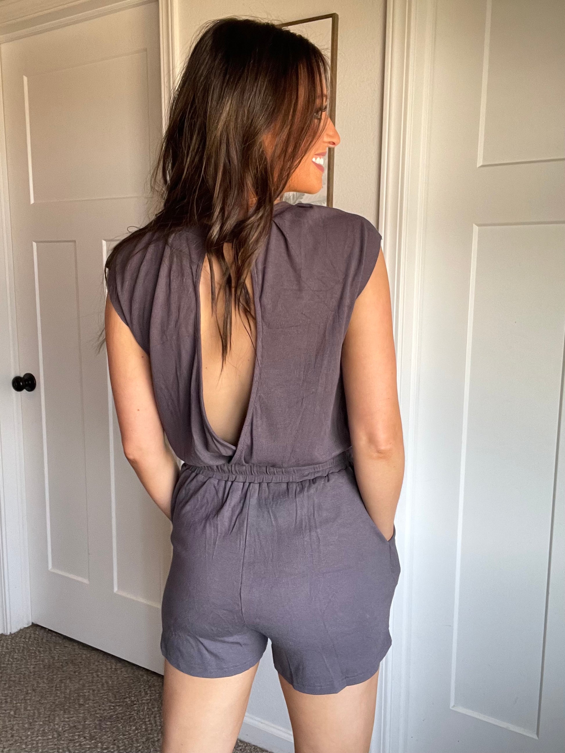 Our casual open back one-piece romper with cap sleeves makes it so effortless to style! With comfortable fabric and flexibility, this gives you the stylish yet laid back look.