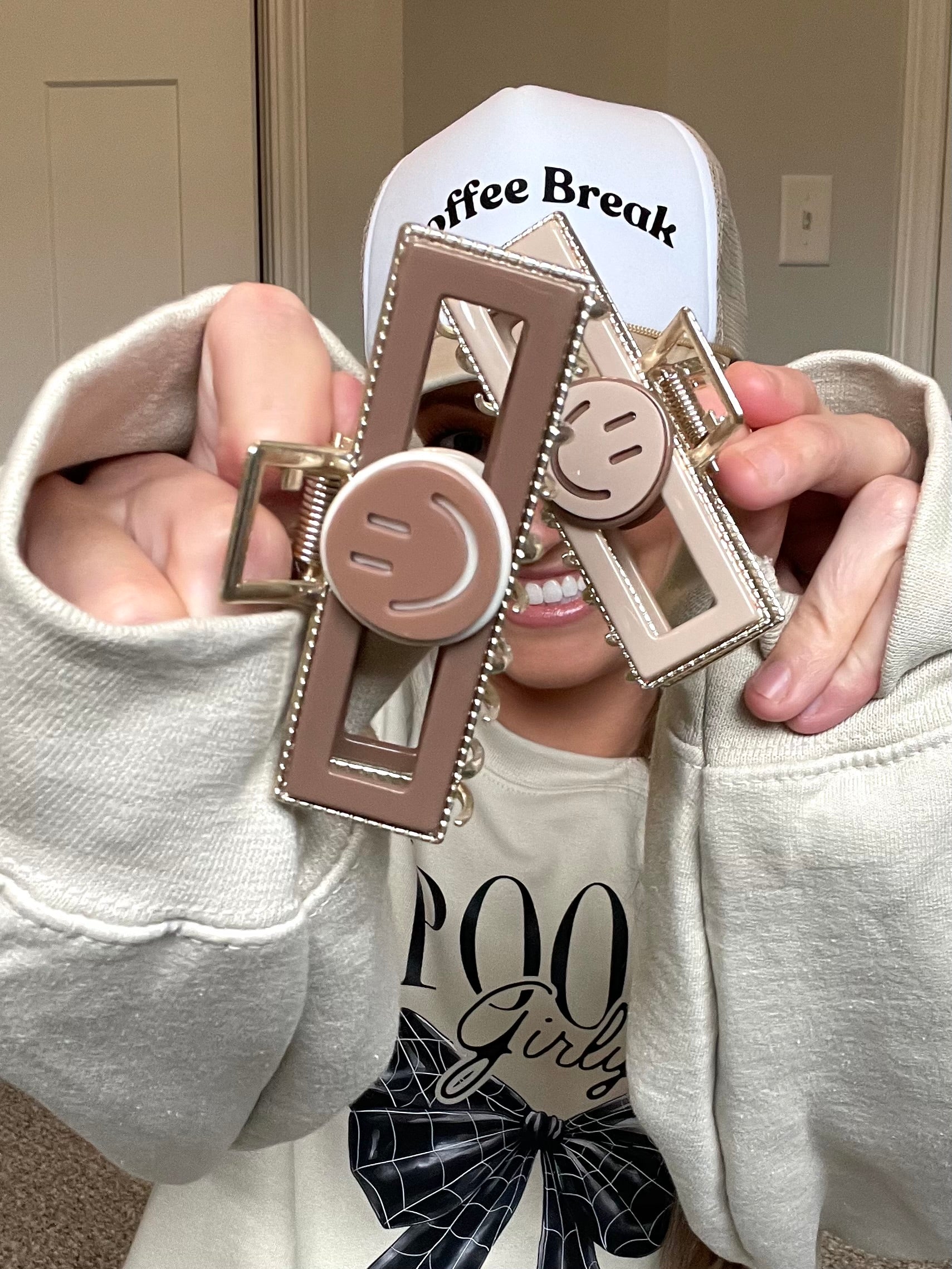 Our super cute rectangle smiley claw clip is so dang cute! With a cellulose material & rectangular shape, this high quality clip is one that you will love!